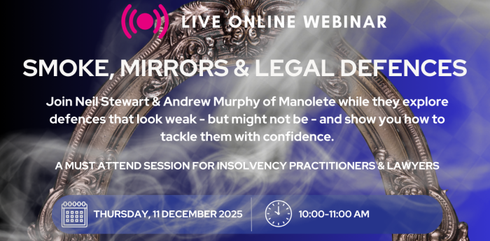 Read moreJoin Manolete's Neil Stewart and Andrew Murphy for a practical, one-hour webinar packed with insights into legal defences that may seem weak, but may not be - and learn how to address them...