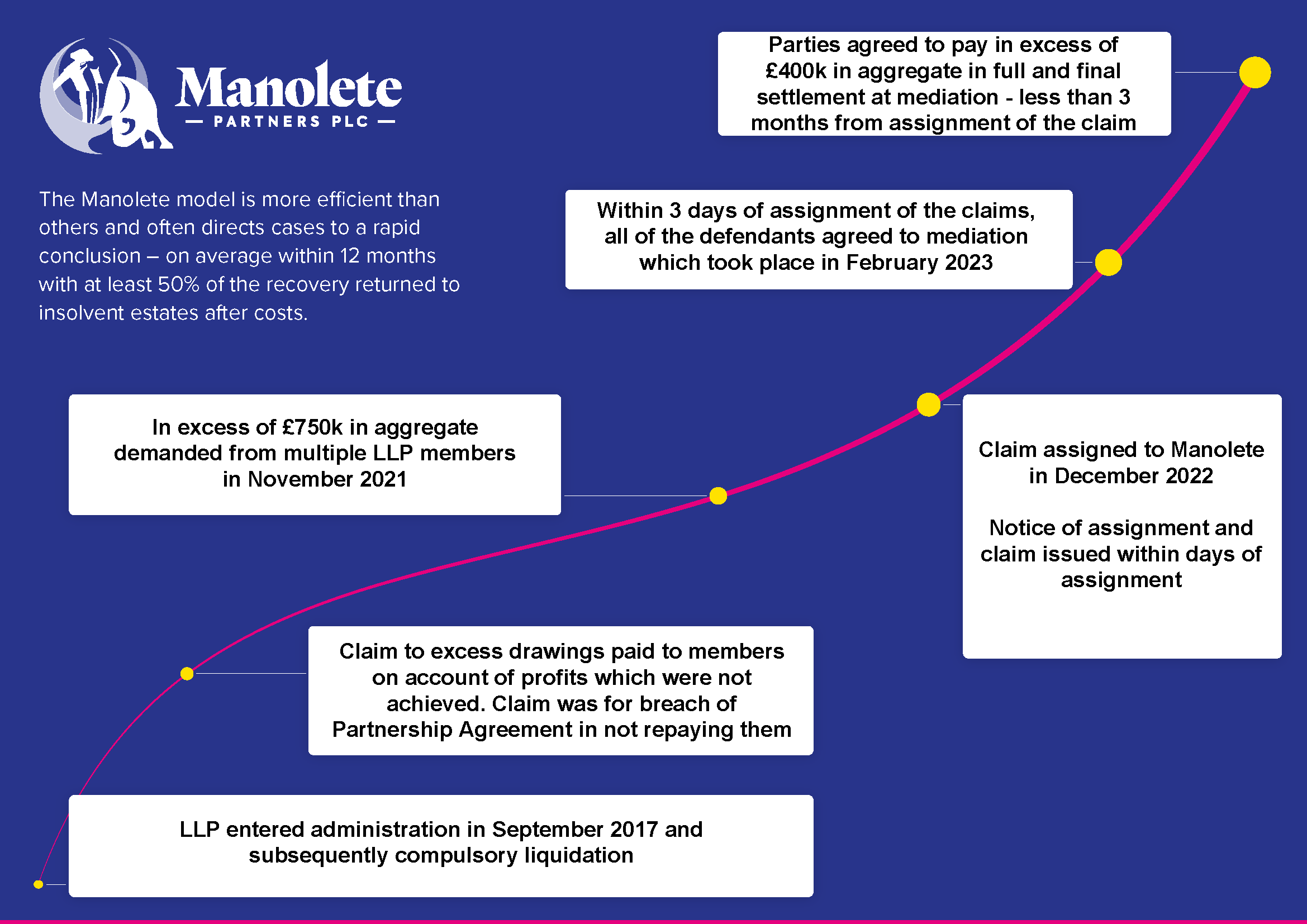 At Manolete, we firmly believe in showcasing the real impact and success stories behind our work. These anonymised case studies will shed light on the transformative power of our model, demonstrating a proven track record of achieving great outcomes in litigation. We breathe new life into insolvency legal claims, enabling insolvent estates to recover maximum value and achieve favourable settlements. With Manolete by your side, you can navigate the legal landscape with confidence and reap the rewards of our tailored approach.