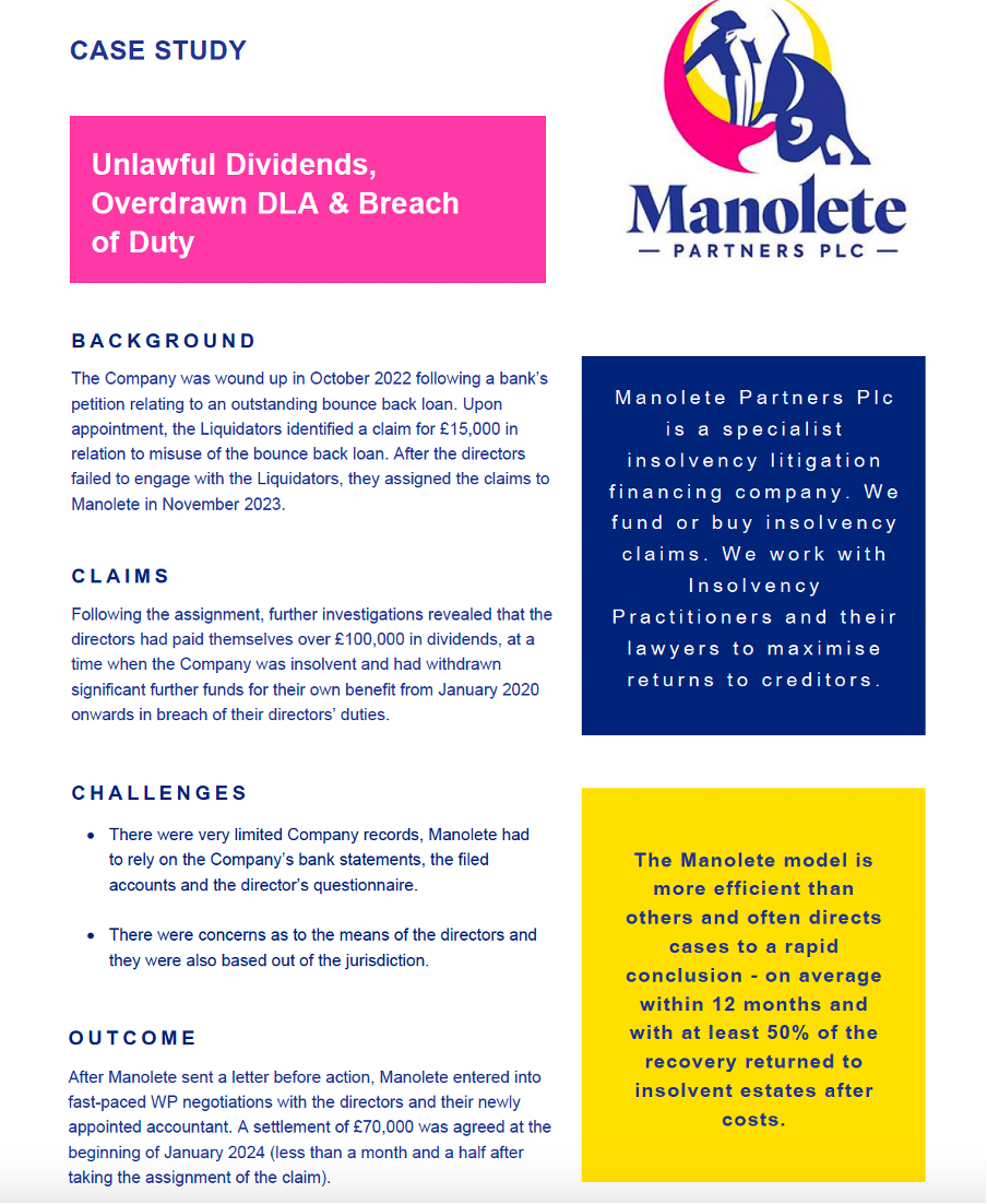 When I joined Manolete I was impressed by the business model which enabled realisations to be made from claims which otherwise would not see the light of day. The purchase and funding agreements drafted by the late Gabriel Moss QC were perfection and the potential to combine finance and legal skills to maximise returns whilst achieving fairness to all stakeholders was clear. The year after I joined we were very excited to have signed 100 cases. We are now at over 1,300 signed cases and this is due to the hard work and dedication of my colleagues in the legal team which has grown from one lawyer (me) to 18.