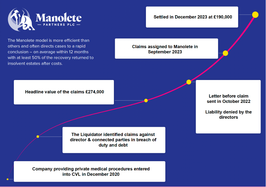 This case concerned a company providing private medical procedures which entered into CVL in December 2020. The IP had identified claims against the director and connected parties in breach of duty and in debt with a headline value of £274k. A letter before claim was sent on behalf of the liquidator in October 2022, and liability was denied.